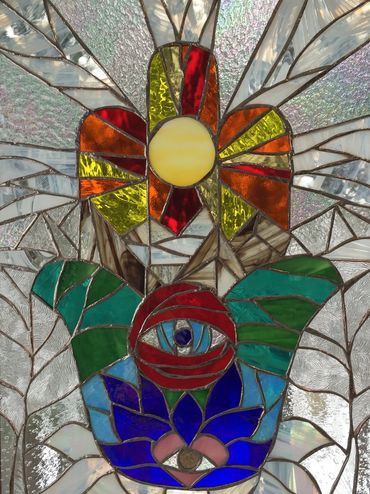 I learned the art of stained glass from our grandmother, Ruth, who dedicated over 30 years to this intricate craft. Remarkably, she also taught my husband long before we met, and the three of us had the opportunity to collaborate on creating a Hamsa and other pieces during a very special time in our lives. Crafting the Hamsa solidified my lifelong love for collaboration and deepened my appreciation for stained glass. I always felt that stained glass would be part of my journey, though I didn't know when.